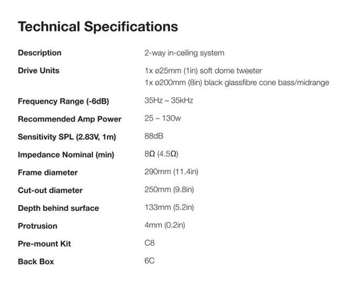 The B&W CCM684 in ceiling speakers are a high performance ceiling speaker that's simplicity itself to install and use. The Bowers & Wilkins in ceiling speakers feature a two-way design, featuring a 200mm (8in) woven glass fibre cone bass/midrange driver and a soft dome tweeter in a neat circular ceiling mount chassis. The B and W CCM 684 tweeter housing pivots for adjustable off-axis treble response and the speaker also features a three-position EQ switch for a better off-axis response. The B&W CCM 684 in ceiling speakers incorporate QuickDogs™ and a plug-and-play functionality it is quick and easy to install.