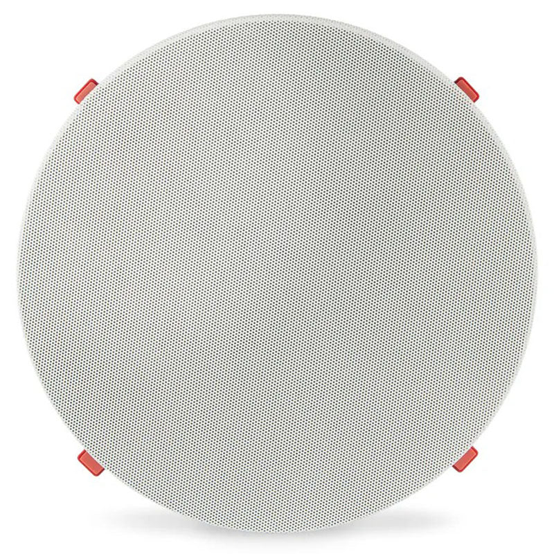 - The inward-bent metal grille creates a seamless, low-profile appearance, resulting in a speaker that virtually disappears into the room.