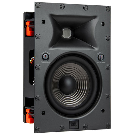 Feel the drama with JBL Studio 6 architectural speakers. The ultimate cinematic home audio experience. Your sound will stand out, while your speakers blend in. Easy to install and designed with no-frame magnetic, zero-bezel grilles that fit snug with the wall, they let powerful JBL signature sound fill the space, rather than your speakers. With a JBL compression driver straight from the professional world, and integrated treble and bass control, these professional quality, high-performance speakers can be easily adjusted to fit your home.