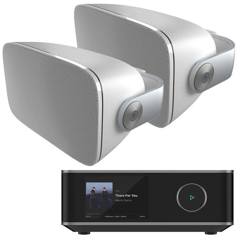 This package consists of a WiiM Amp Ultra (Space Grey) and 2 x B&W AM-1 Outdoor Speakers.