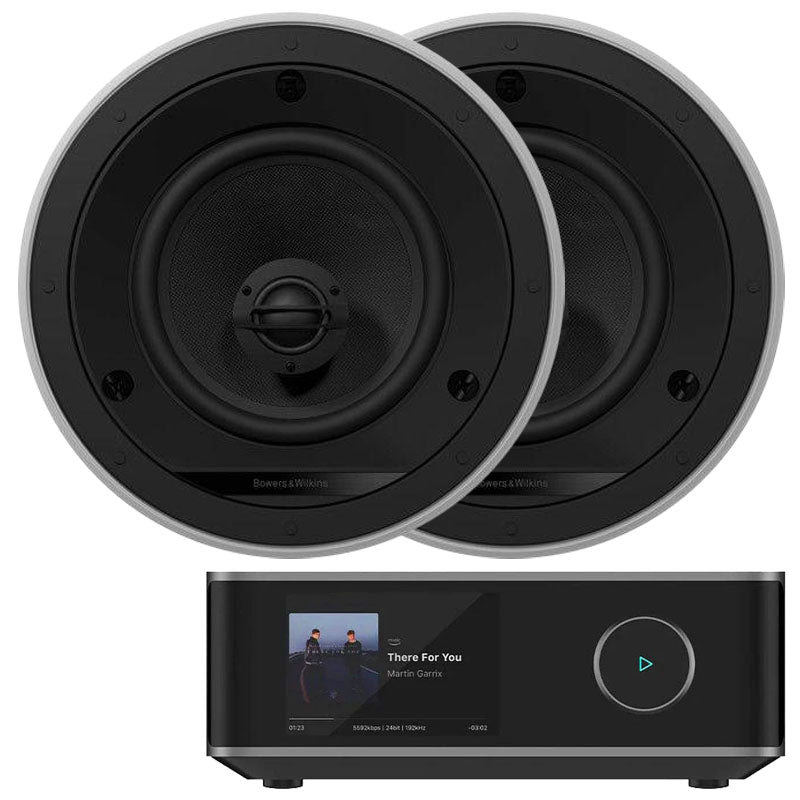 This package consists of a WiiM Amp Ultra (Space Grey) and 2 x B&W CCM665 In-Ceiling Speakers.