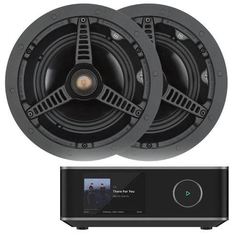 This package consists of a WiiM Amp Ultra (Space Grey) and 2 x Monitor Audio C165 Ceiling Speakers.