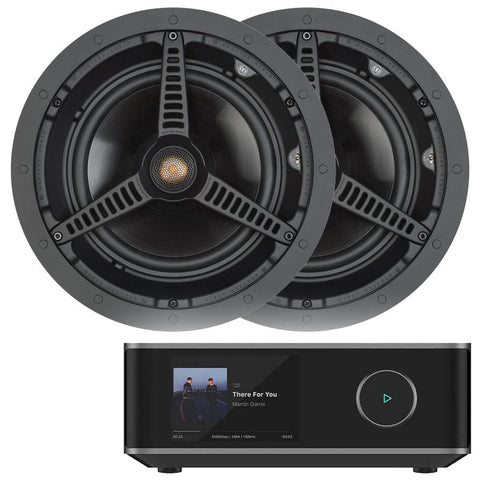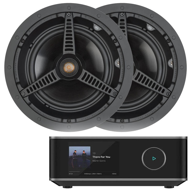This package consists of a WiiM Amp Ultra (Space Grey) and 2 x Monitor Audio C180 Ceiling Speakers.