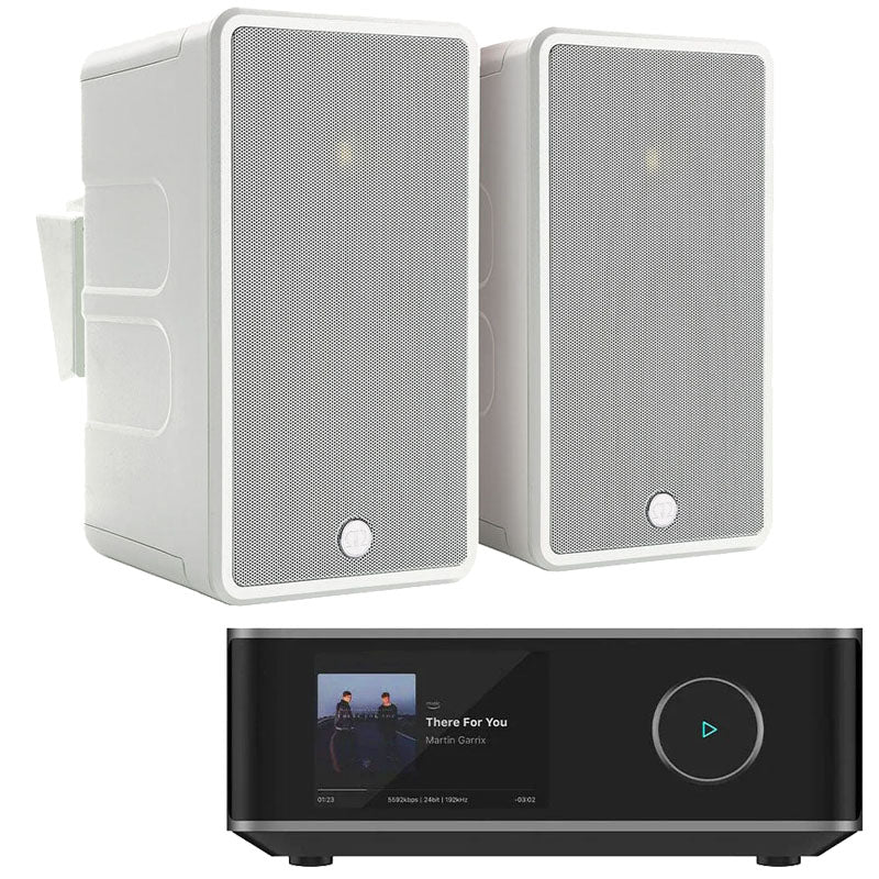 This package consists of a WiiM Amp Ultra (Space Grey) and 2 x Monitor Audio CL60 Outdoor Speakers.
