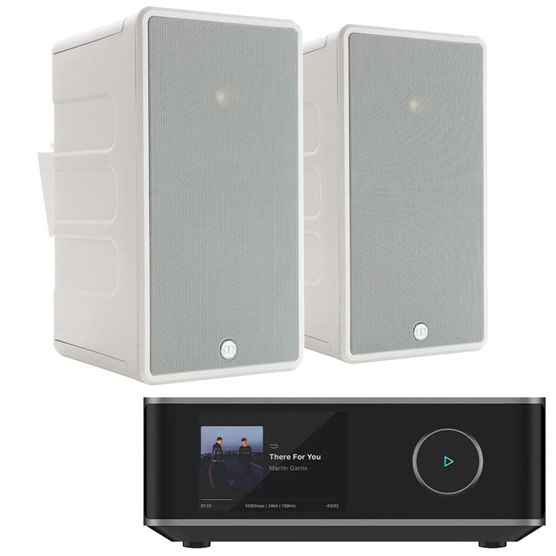 This package consists of a WiiM Amp Ultra (Space Grey) and 2 x Monitor Audio CL80 Outdoor Speakers.