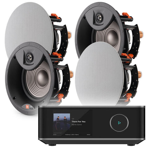 This package consists of a WiiM Amp Ultra (Space Grey) and 4 x JBL Studio 2 8IC Ceiling Speakers.